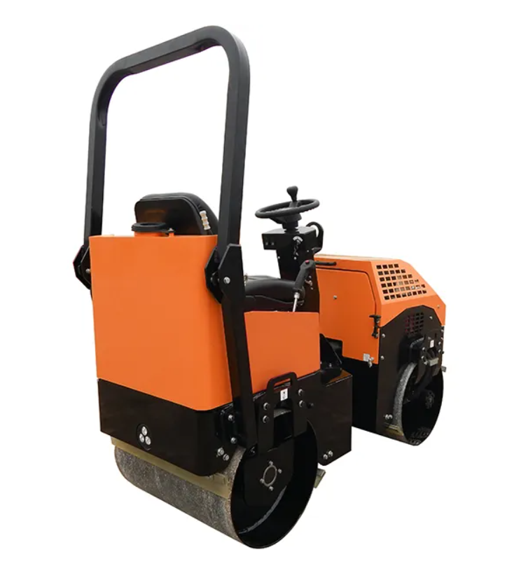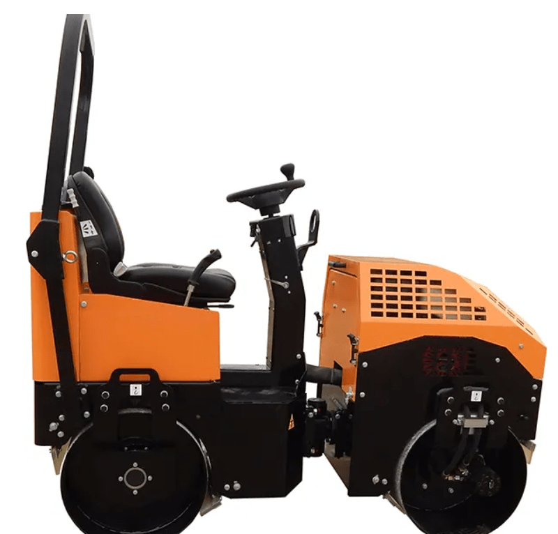 Надежный тандемный виброкаток GROST VR1000, управляемый сидящим оператором, с высокой маневренностью и мобильностью.
